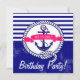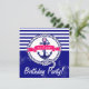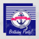 Navy Blue Anchor and Banner Stripes Nautical Birthday Invitation