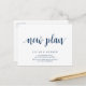 This is the modern minimal simple clean design themed, in Navy Blue font, Wedding party invitation Rescheduled (postponed / postponement) postcard (new plans) . It is the perfect and elegant way to make the reschedule announcement to your friends and family.