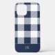 Rustic Chic Navy Blue and White Buffalo Plaid Pattern, monogram iPhone case.