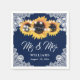 Rustic Navy Blue Sunflower Mr and Mrs Wedding Napkin