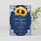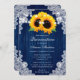 Rustic Navy Blue Sunflower Wood Lace Quinceañera Invitation