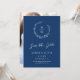 This elegant wedding save the date features a beautiful navy blue colour background, hand-drawn wildflower wreath, your initials, and elegant typography. On the back is your photo in vertical format. Photo on the back is removable if needed. It's a perfect design for a rustic yet elegant wedding! See the collection for more items!
