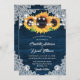 Rustic Navy Blue Wood Lace Sunflower Wedding Invitation