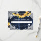 Elegant rustic navy blue and sunflower wedding RSVP card featuring sunflower flowers and string lights against a rustic wood and lace background. Perfect card design to complement your navy blue rustic wedding party inspired by sunflowers. Matching items available.