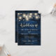 Rustic Navy Blue Wood String Lights Wedding Invitation
