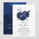 Navy blue and silver floral baby or bridal drive by shower invitation with elegant typography customisable to your event specifics.
