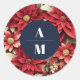 Rustic Navy Poinsettia Floral Christmas Wedding Classic Round Sticker