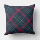 Seasonal Christmas throw pillow design features a diagonal Scottish tartan plaid pattern in a red, hunter green, and navy blue colour scheme.