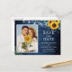 Rustic Navy Sunflower String Lights Photo Save the Date Postcard