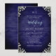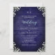 Rustic Navy Wood Baby's Breath Floral Wedding Invitation