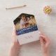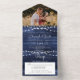 Rustic Navy Wood String Lights Photo RSVP Wedding All In One Invitation