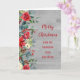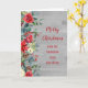 Merry Christmas for nephew and his wife card with green watercolor foliage, rustic wood pattern and pinecones and thoughtful verse.