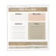 A lined notepad featuring rustic woodsy design as a header that displays the words 'Bible Study Notes' beneath it are boxes in soft neutral colour variations where you can write down scriptures, observations, applications and prayer requests. The same rustic neutral stripe border along the bottom of notepad. A simplistic notepad to have on hand for taking with you to your studies, services or events.