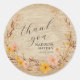 Rustic Neutral Boho Floral Wildflower Faux Wood Look Wedding Thank you Classic Round Sticker. * Note - no actual wood is used in the creation of this item.