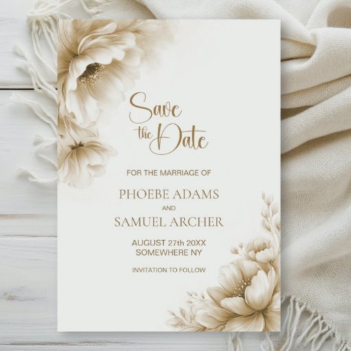 Rustic Neutral Floral Wedding Save the Date