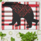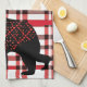 Rustic Northwoods Black Bear Silhouette On Plaid Tea Towel