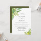 Beautiful watercolor olives and branches in chic shades of green, rustic Tuscan style wedding invitation. Back of card features dark olive green colour.