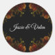 Rustic Orange Black Elegant Wedding Invitation Classic Round Sticker