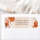 These beautiful and romantic wedding return address labels feature trendy boho style and elegant text. Rustic bohemian orange, peach, and blush flowers and neutral botanical leaves decorate the corners, with matching subtle watercolor splashes on a soft blush background.