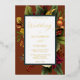 An ethereal floral bouquet in shades of winter white, gold, orange and dark red with greenery on a white, dusky gold and dark teal edged panel over a rusty orange background invites your guests to what is sure to be a memorable rustic "Wedding" elegant occasion. The back features a dark teal background. Simply add your names and wedding details to complete. All text is in real foil. Script text can only be edited by designer--please message designer if you need this changed. Composite design by Holiday Hearts Designs (rights reserved).