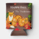 Personalised with the family name. Rustic Happy Fall Rustic Orange Fox Pumpkin Fall Autumn Leaves Can Cooler
