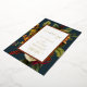 An ethereal floral bouquet in shades of winter white, gold, orange and dark red with greenery on a white, dusky gold and rusty orange edged panel over a dark teal background invites your guests to what is sure to be a memorable rustic "Wedding" elegant occasion. The back features a dark rusty orange background. Simply add your names and wedding details to complete. All text is in real foil. Script text can only be edited by designer--please message designer if you need this changed. Composite design by Holiday Hearts Designs (rights reserved).