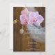Invite guests to your upcoming rural farm or ranch style nuptials with the casual yet classy Rustic Orchid Elegance Country Barn Wedding Invitation. This informal and elegant custom marriage invite features a quaint floral photograph of pink phalaenopsis orchid flowers on the stem and a white bridal veil with a brown barn wood background.