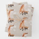 A rustic oyster gray color holiday wrapping paper sheet set featuring watercolour-painted winter animals: a doe reindeer, a hare rabbit and a red fox experiencing their first snowfall in a repeat pattern on a warm vintage muted oyster gray color background.