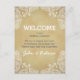 This rustic style wedding weekend welcome card features a white, hand drawn paisley pattern on all four corners and a rustic gold background. Custom text allows you to add a personal welcome message and the names of the bride and groom.