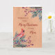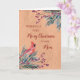 Merry Christmas for Mum card with winter watercolor foliage, cardinal, rustic paper pattern and thoughtful verse.