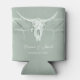 Rustic Pastel Sage Green White Western Cow Skull Can Cooler