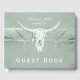 Rustic Pastel Sage Green White Western Cow Skull Guest Book