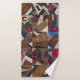 This striking and colorful bath towel set (bath towel, hand towel, facecloth) features a beautiful rustic patchwork crazy quilt design. Enjoy the intricate details - including horse, horseshoe, butterfly, wheat, flower and cat motifs. The dominant color tones are shades of burgundy/wine, blue, brown and taupe. Vintage antique quilt patterns are currently very trendy in home décor and pair well with the modern farmhouse look. These towels will elevate your style and become an attractive focal point in your bathroom. Elegant and unique, these towels are great for a guest bathroom, at home or at the cabin, country home or lake house.