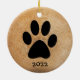 Rustic Paw Print Custom Christmas Ceramic Ornament.