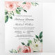 Rustic Peach Floral All in One QR Code Wedding Tri-Fold Invitation
