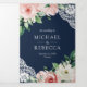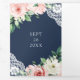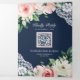 Rustic Peach Floral Lace Navy Blue QR Code Wedding Tri-Fold Invitation