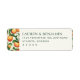These return address labels feature a charming peach-themed design with a watercolor effect, creating a warm and inviting atmosphere. The layout includes a repeating pattern of ripe peaches with green leaves on the sides, framed by ample negative space that highlights the central text area. A clean serif font is used for the customizable text, ensuring readability while complementing the natural imagery. Perfect for personal correspondence or special occasions, these labels blend rustic charm with modern minimalism, making them ideal for those who appreciate earthy tones and organic aesthetics.