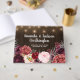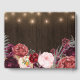 Rustic Peony Country Fall Wood Wedding Guest Book - features a rustic barn wood background with string lights. The bottom features various elegant watercolor peony flowers, roses and floral elements in shades of grey, pink, burgundy, wine and Marsala. See the collection found on this page for that item and to also see the full matching product designs to complete your event.