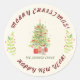 Rustic Personalise Greenery Christmas Classic Round Sticker