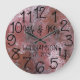 Beautiful, unique, one-of-a-kind personalised design features a faux-rustic distressed vintage rust background with black personalised his and her names in a script font overlay design and the last name and year established in a bold script with a printed wood effect background. Personalise this clock by adding your personal information. Makes a great wedding, anniversary, or housewarming gift. Click "personalise this template" to change the names, fonts, and colours to create a unique one of a kind design. What an elegant, rustic accessory for your living room, bedroom, or family room. If you need any help with customisation please email me at ybnormalone @gmail.com. Thanks for stopping by www.zazzle.com/Personal_Creations. ©Karen Hall for Personal_Creations at Zazzle.