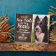 Personalized pet memorial plaque featuring a photo of your beloved pet, a rustic wooden background, and a sympathy quote that reads "you left paw prints on our hearts and we are forever changed", a paw print, heart, your dogs name, and the dates. A wonderful keepsake and tribute of your precious family pet dog or cat.