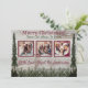 Rustic style photo Christmas card featuring white ship lap and skinny Christmas trees.