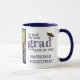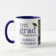 Simple, stylish, rustic photo graduation mug, with rustic typography and navy blue trimmings. The main heading reads SO GLAD FOR THIS GRAD on the front and back, and there is a customisable photo in the middle. Add your name and 'class of' year. A great gift to celebrate your graduate.
