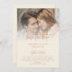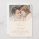 Rustic Photo Overlay Script QR Code Cream Wedding. Printable or printed. Bohemian vibes with earthy colours terracotta lettering on cream with your favourite photo at the top. Change text as required and replace the sample picture with your own. With a QR code to your wedding website on the back so your guests can easily scan it and see more details. Your QR code will be automatically generated to update the sample code in the design, when you simply change the sample URL in the template with your own wedding website URL. Or you can delete the sample QR code and text on the back if you wish.