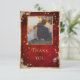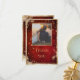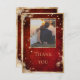 Send this beautiful photo wedding “Thank you” card to all your family and friends to graciously thank them. The scarlet red rustic background is such a rich chic look. This is a lovely and vintage looking card. Trimmed in faux gold glitter to set the tone for romantic and classic elegance. Gold splashes finish off this pretty wedding “Thank You” note. Beautiful for any season.