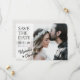 Simple and chic. This stylish, modern rustic save the date card has a bright, clean and fresh design featuring a semi-transparent portion on the left for your text, lending a feeling of flow. To add to that effect, depending on the length of your first names, one or both might 'overflow' onto the photo as in this example! So you can experiment with which name you put first and see how each version looks. The back of the card features a base with the look of rustic whitewashed wood. You can remove this and replace it with a colour of your choice. Use the design tools to customise and make it uniquely yours with your favourite photo!