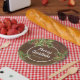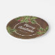Add this rustic themed Christmas plate to you party this year. The background is a dark wood accented with handwritten calligraphy and watercolor pine and berries. Personalise with your name.