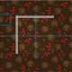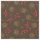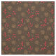 Rustic dark brown fabric with a forest pattern of fir tree pine cones and red holly berries