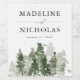 Elegant, rustic wedding wine label featuring a forest of hunter green & sage green watercolor pine trees. Personalise the pine tree wine labels by adding your names & wedding date. Designed to coordinate with our Rustic Pine Forest wedding collection.