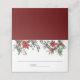 Elegant wedding place cards featuring beautiful red poinsettia flowers with pine cones and leaves.